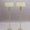 With re-polished brass tripod bases and mounts, white lacquered stems and new shades.