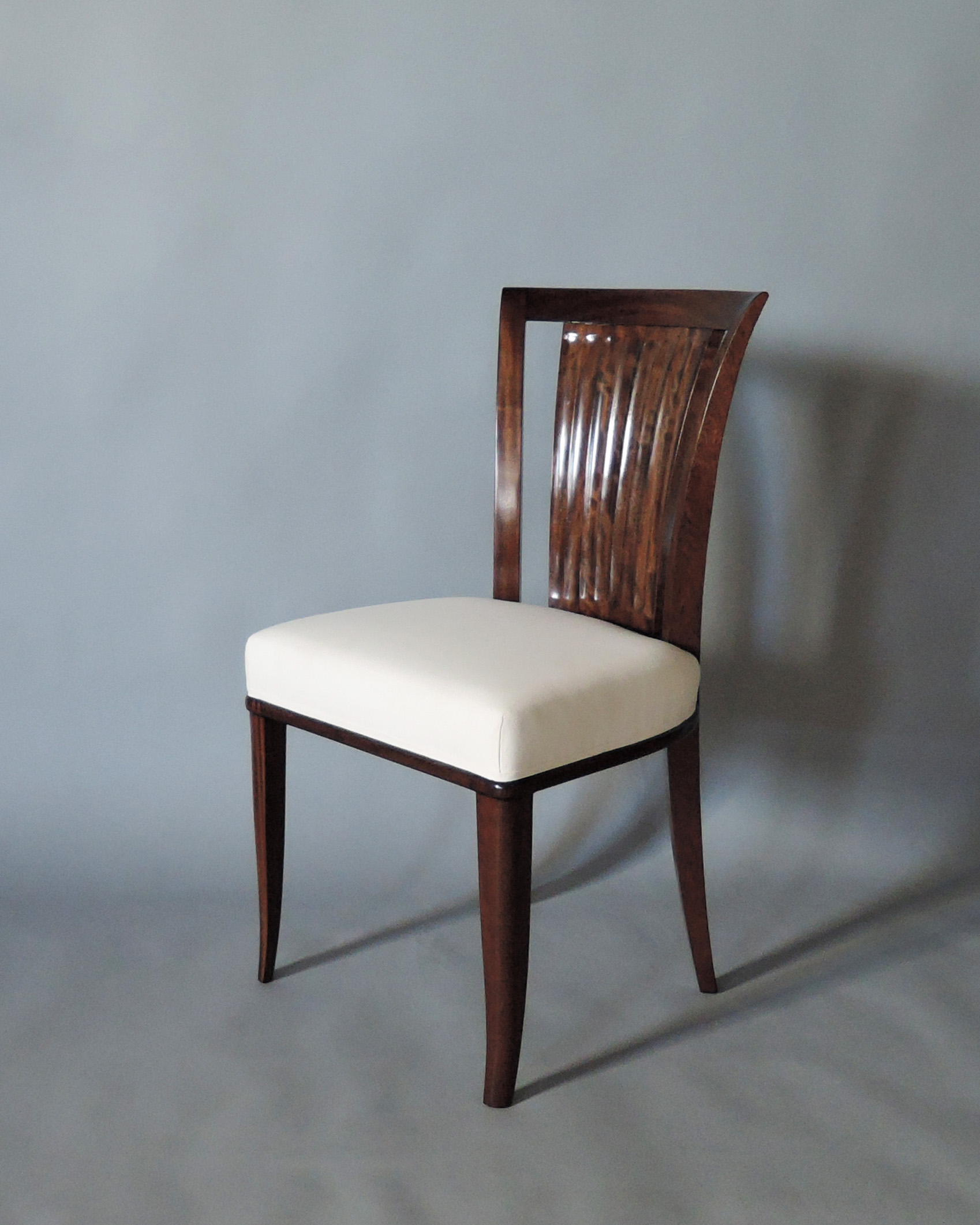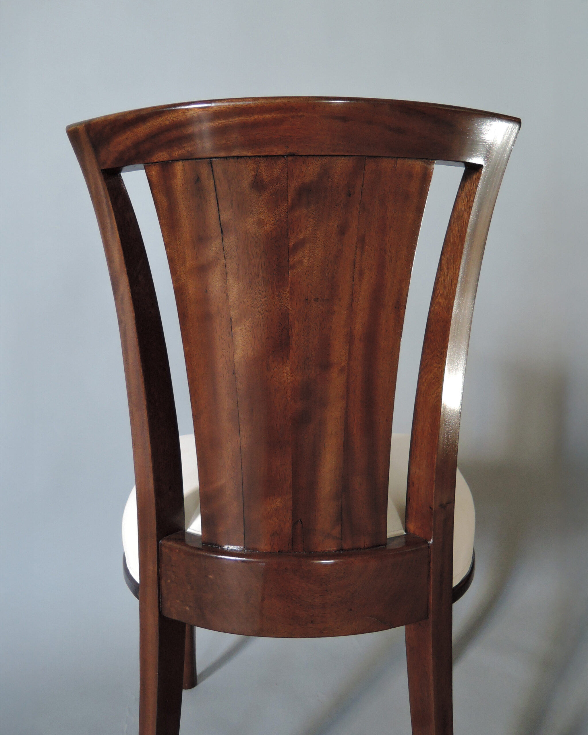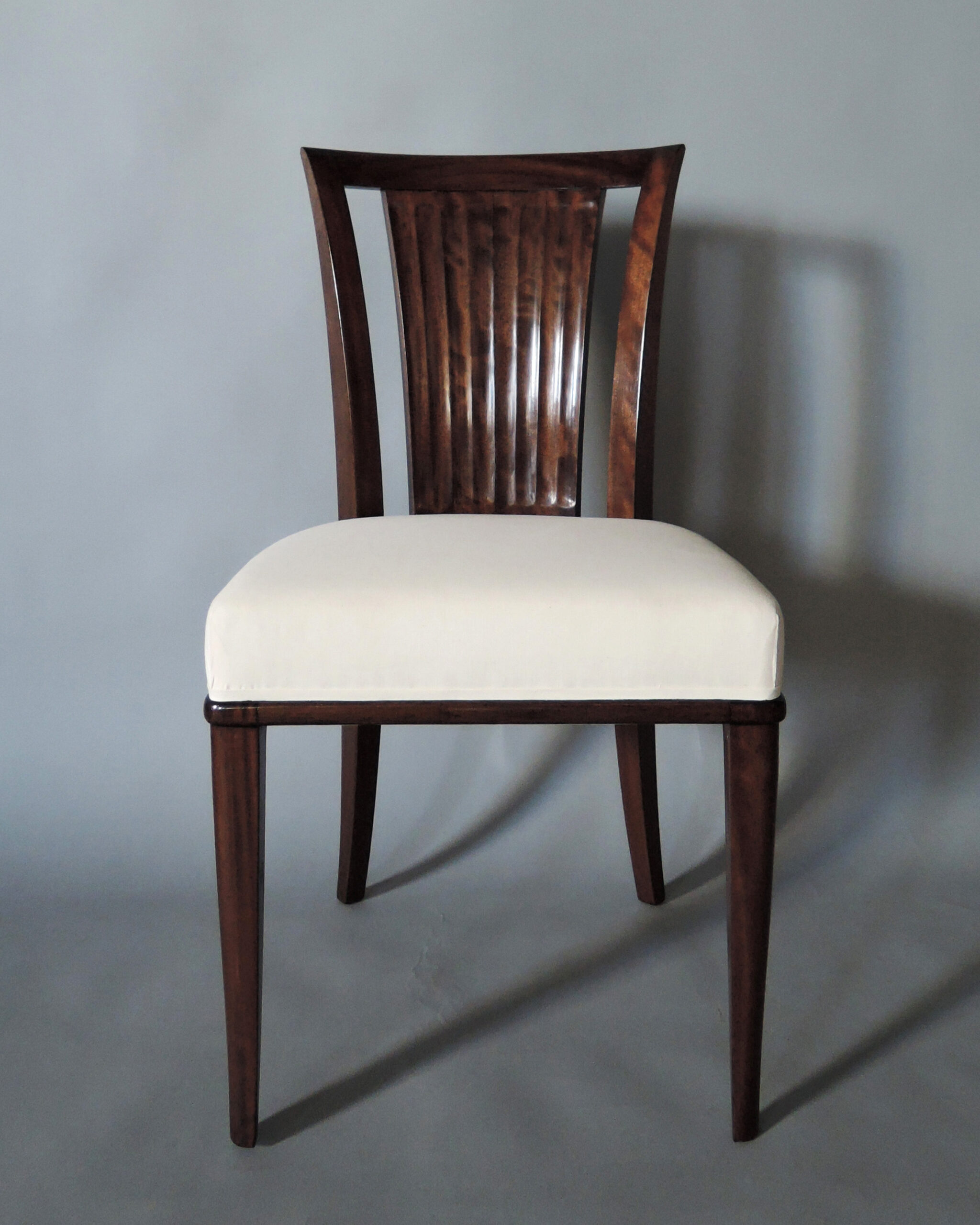 A set of six fine French Art Deco dining chairs in solid mahogany by Gaston Poisson.