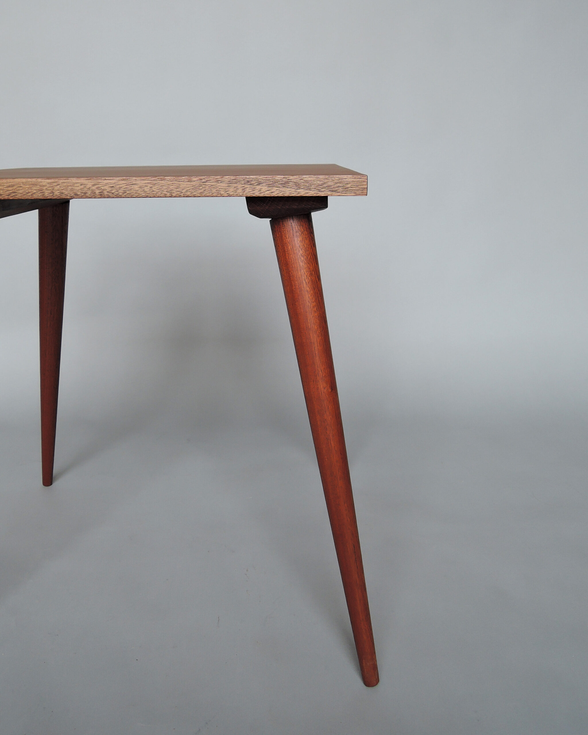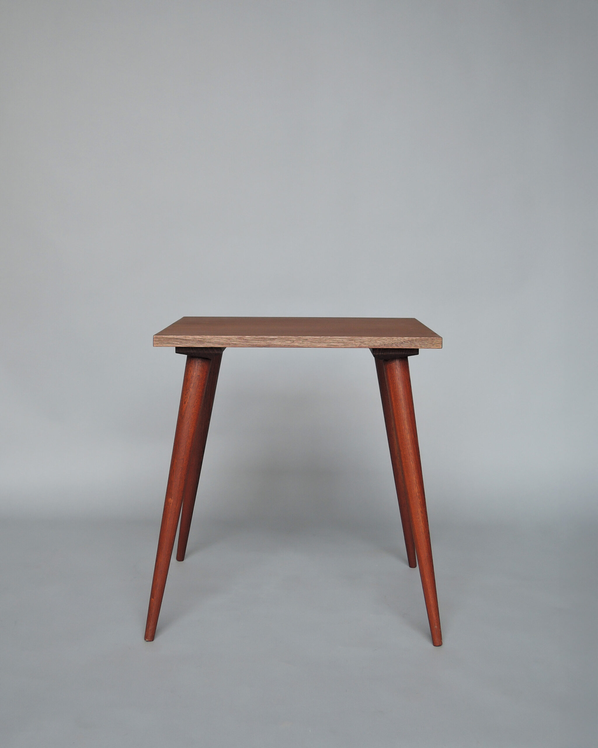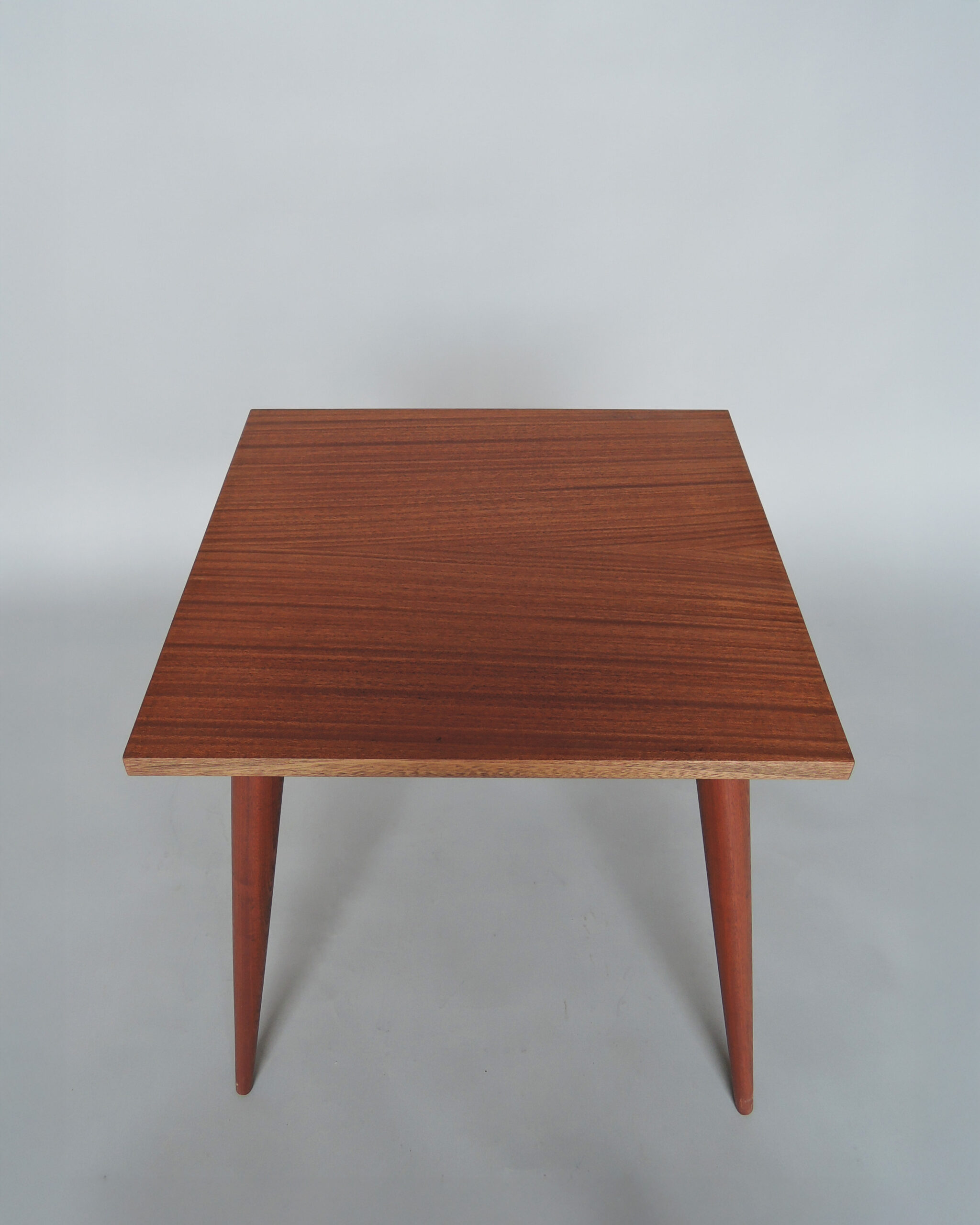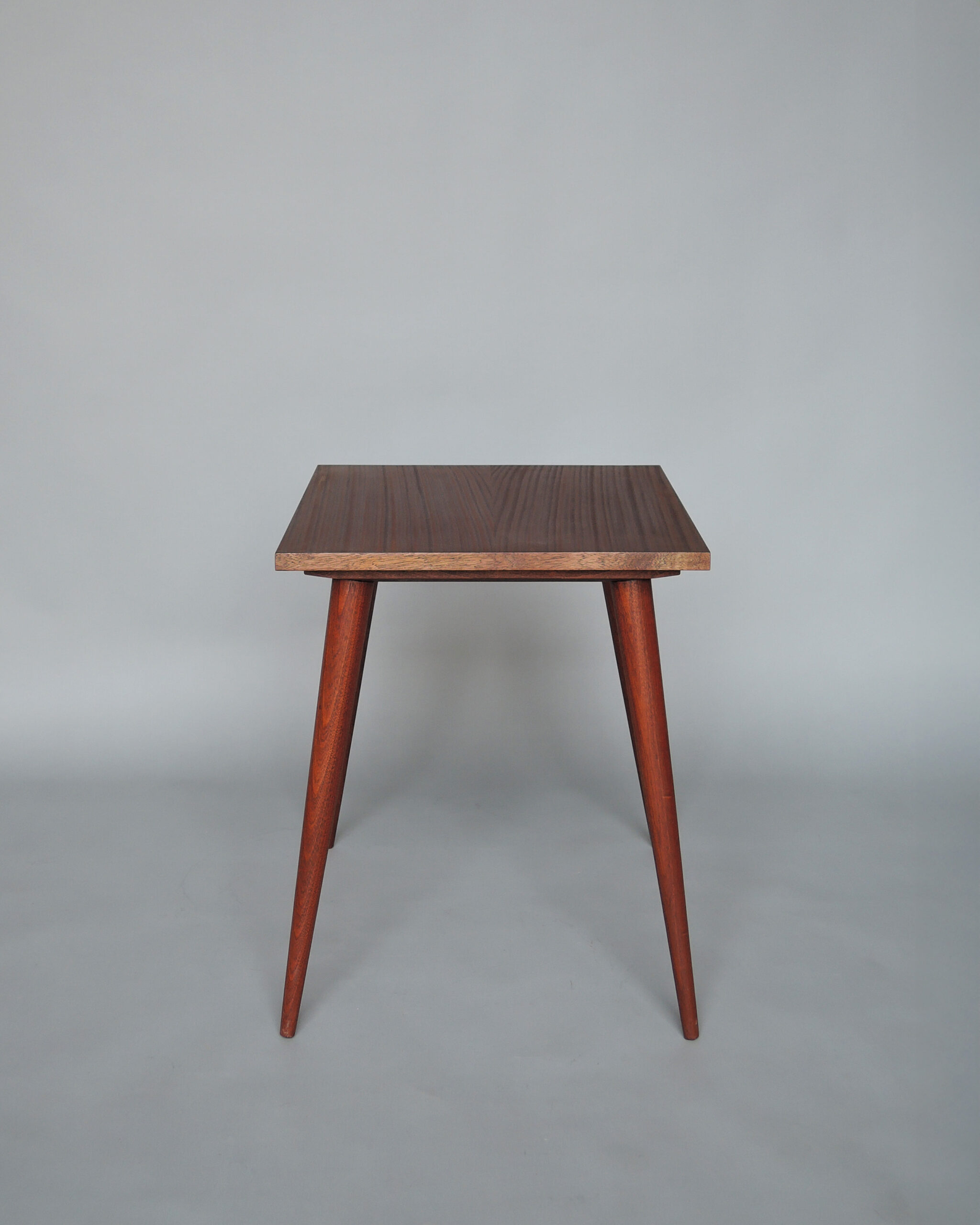 A fine French 1950s mahogany occasional table with a 4 compass leg base and a rectangular top.