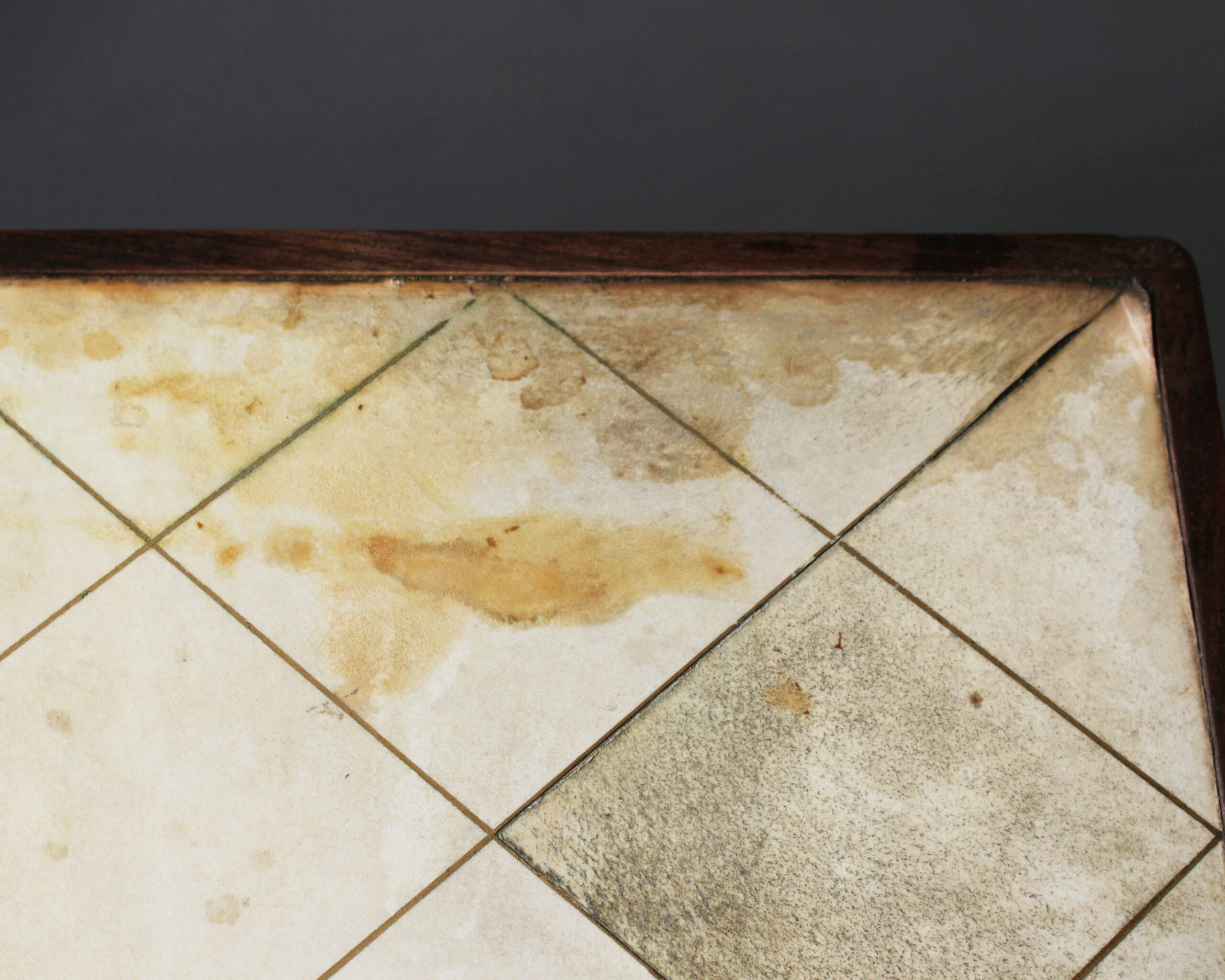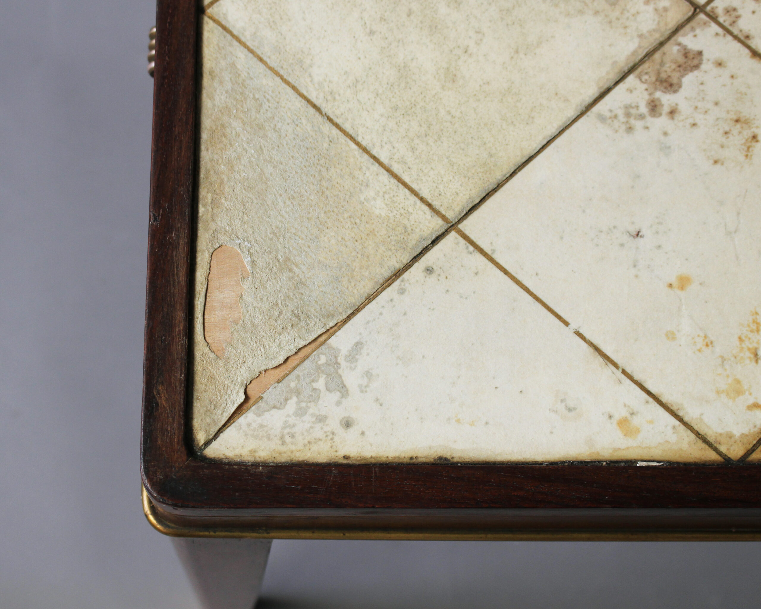 All original vintage condition, wear consistent with age and use, distressed parchment, veneer restorations and refinishing to be done (not included in price).