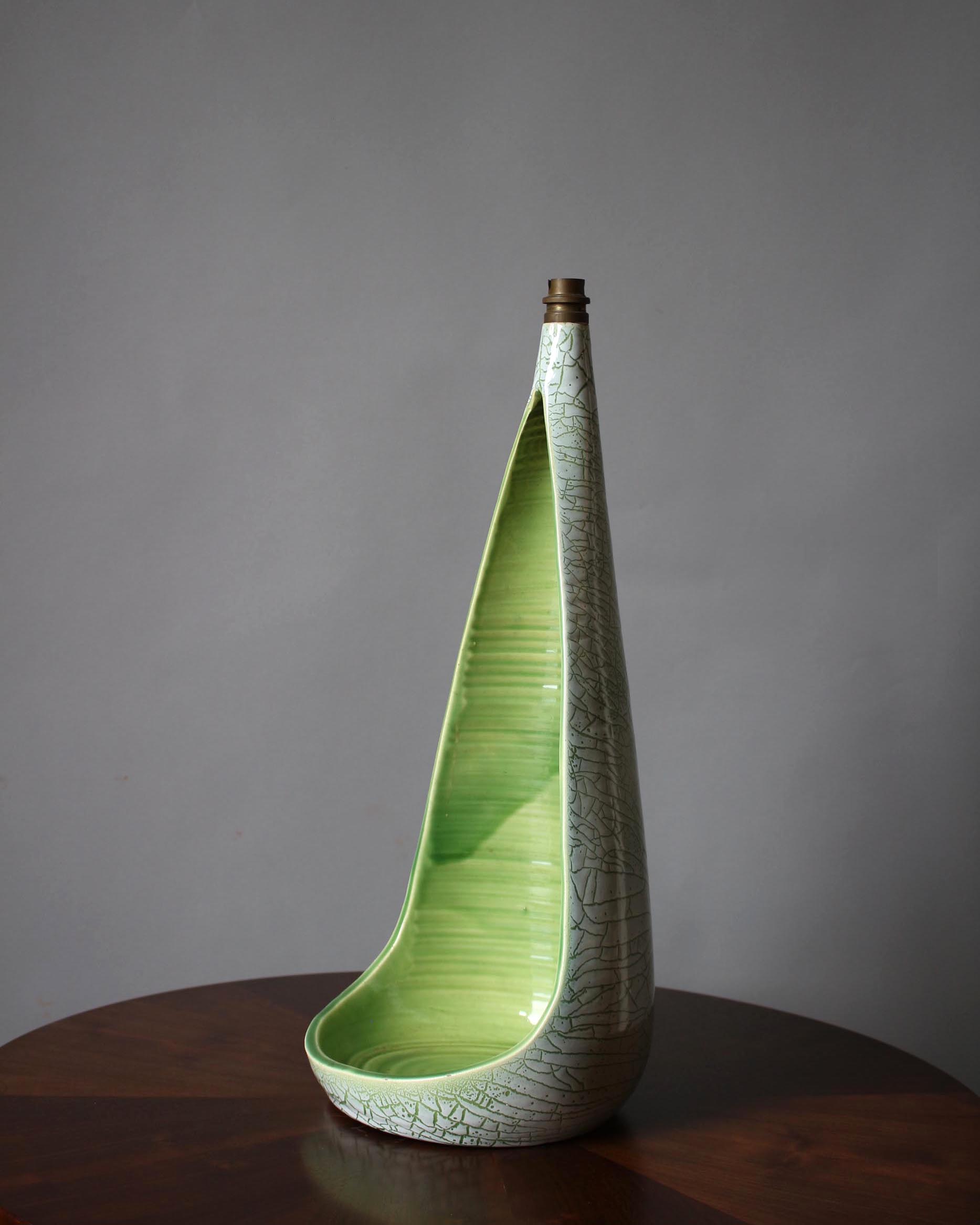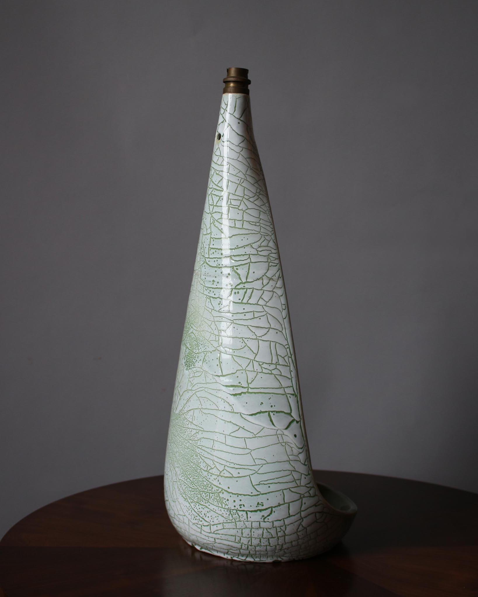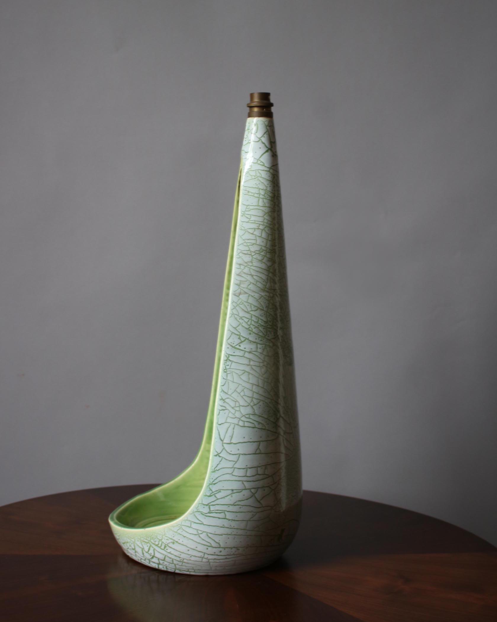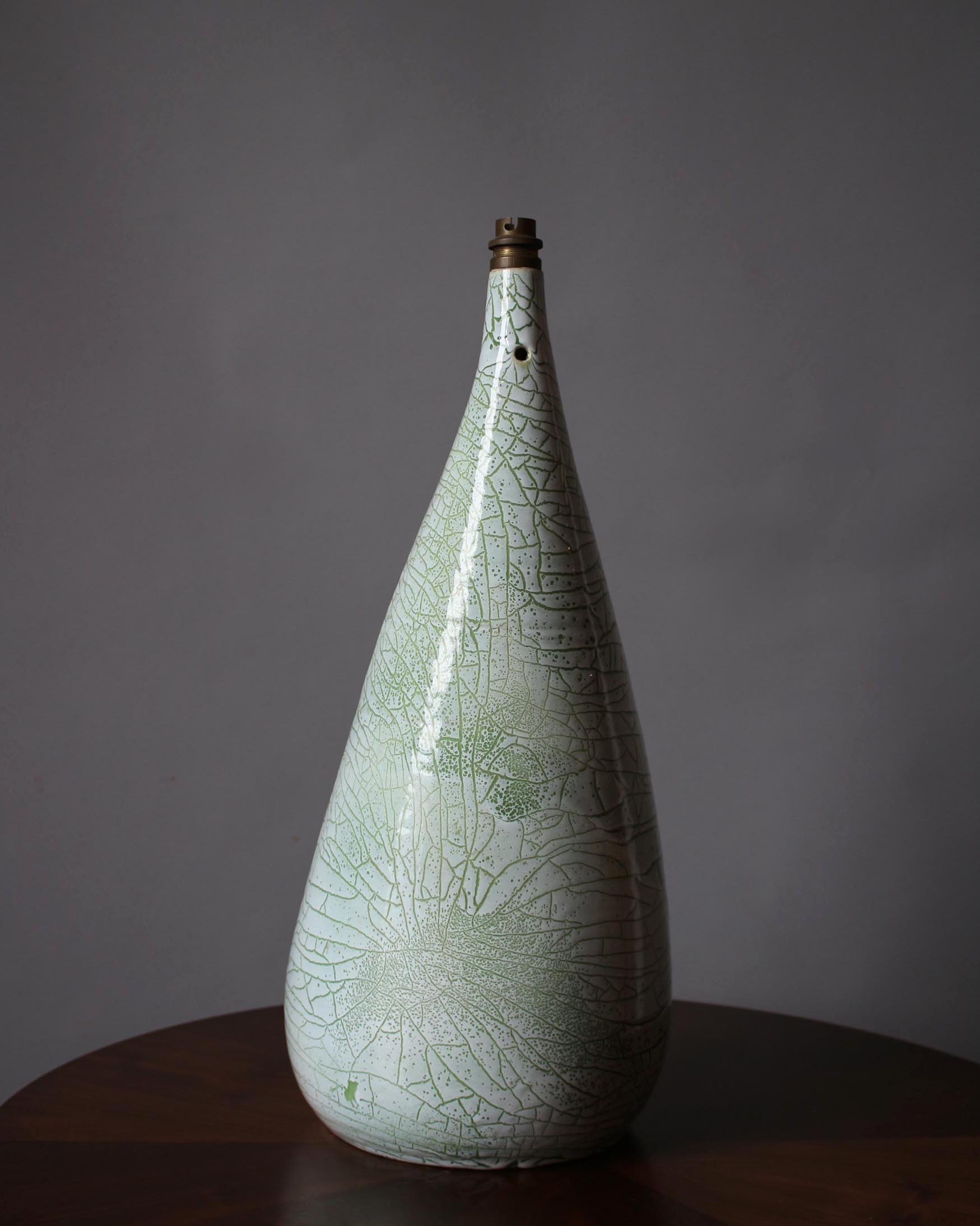 A fine French 1960s green “craquele” ceramic table lamp base by Accolay