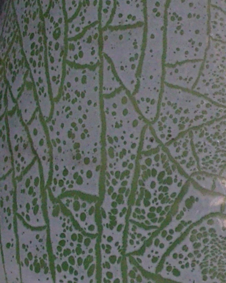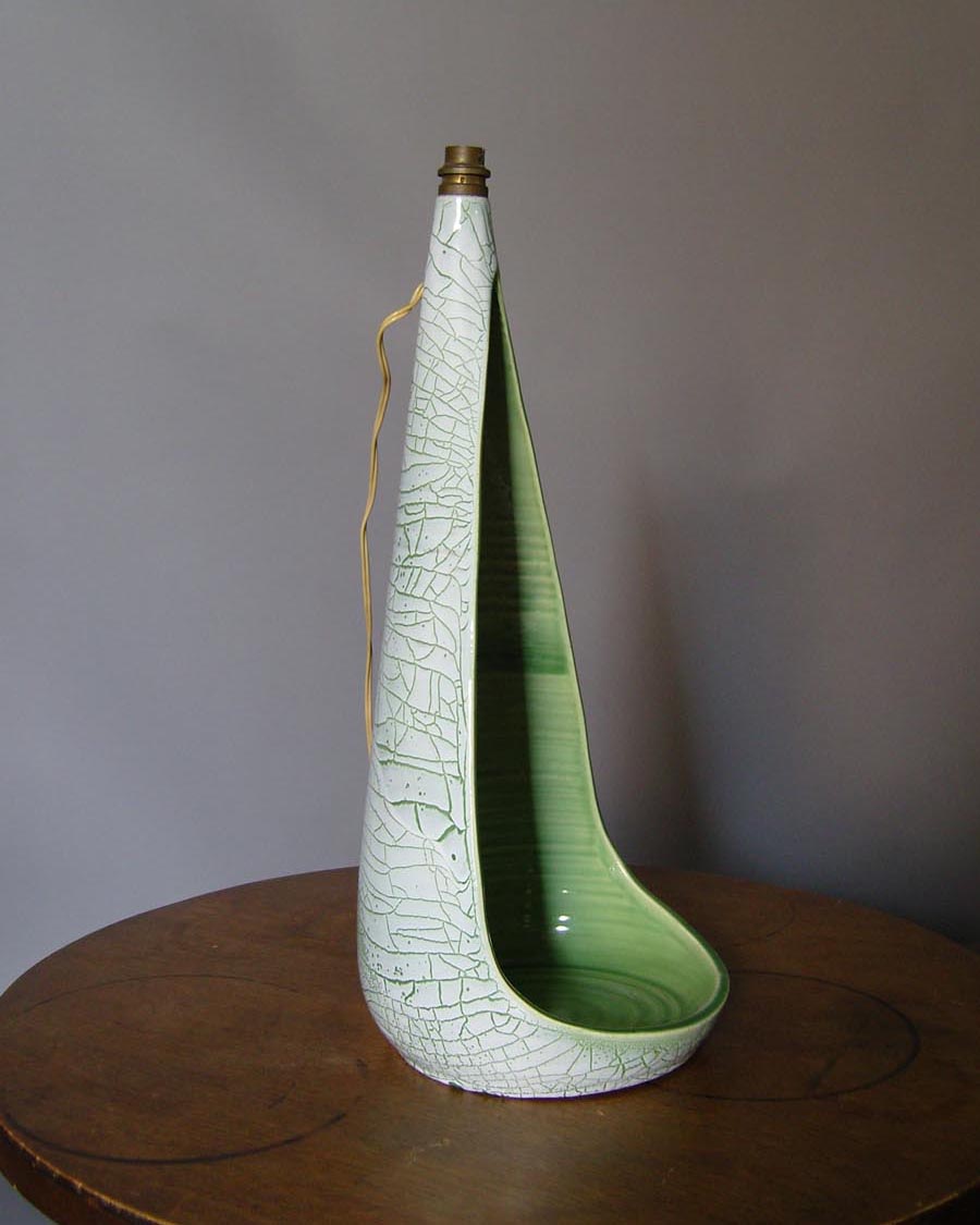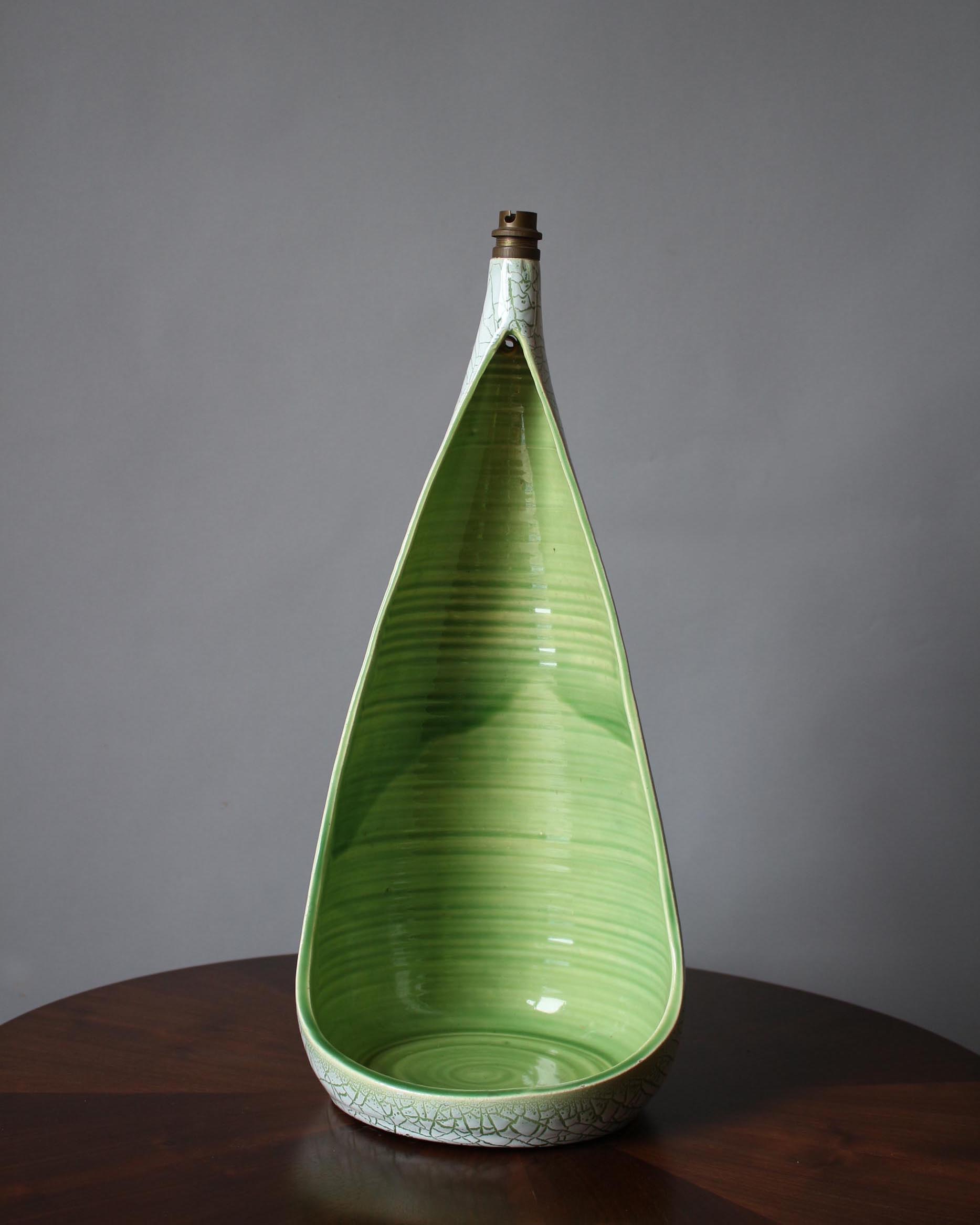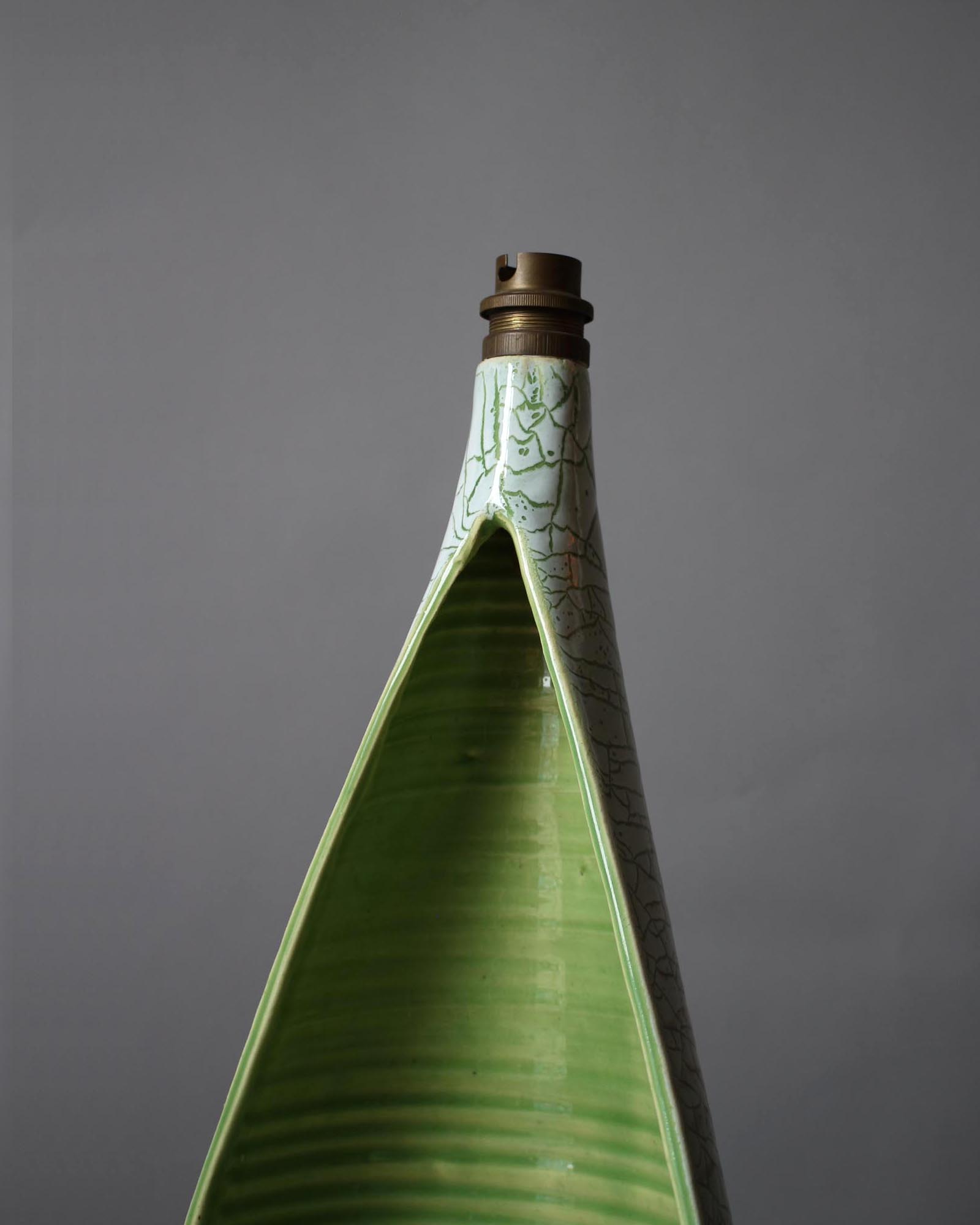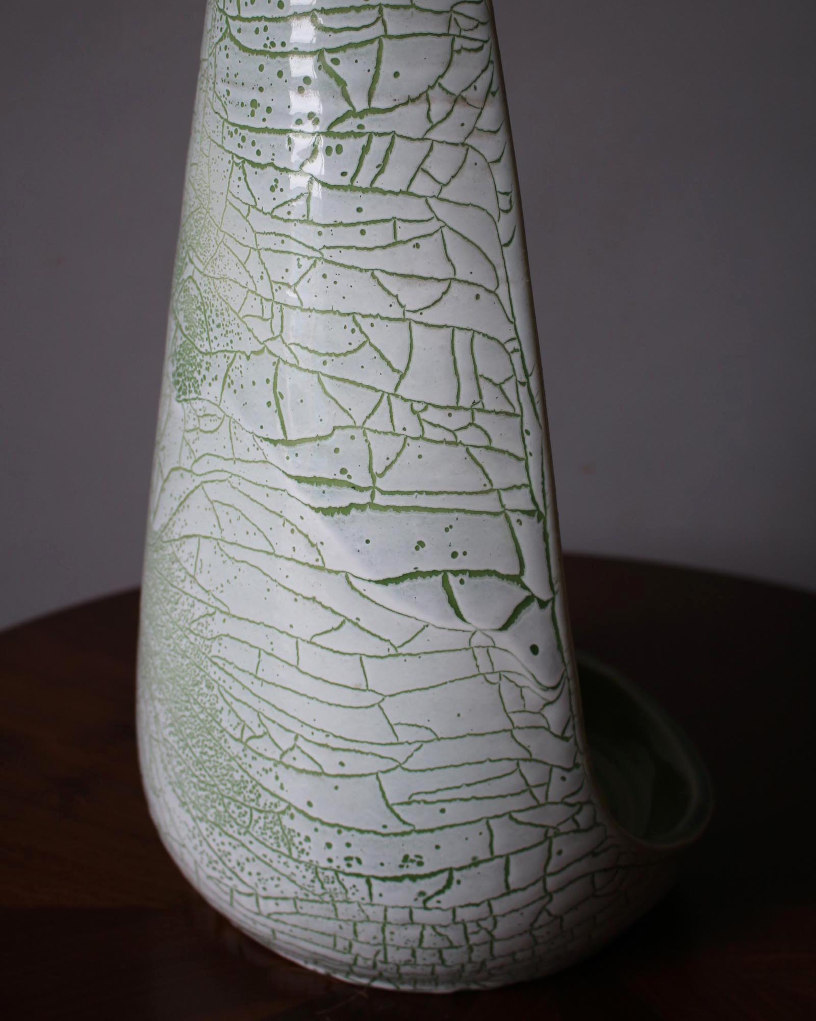 A fine French 1960s green “craquele” ceramic table lamp base by Accolay
