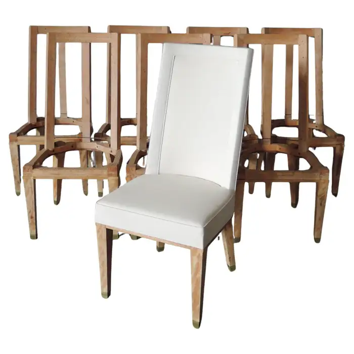 Set of 8 Fine French 1950s Bleached Mahogany Dining Chairs by Jacques Adnet
