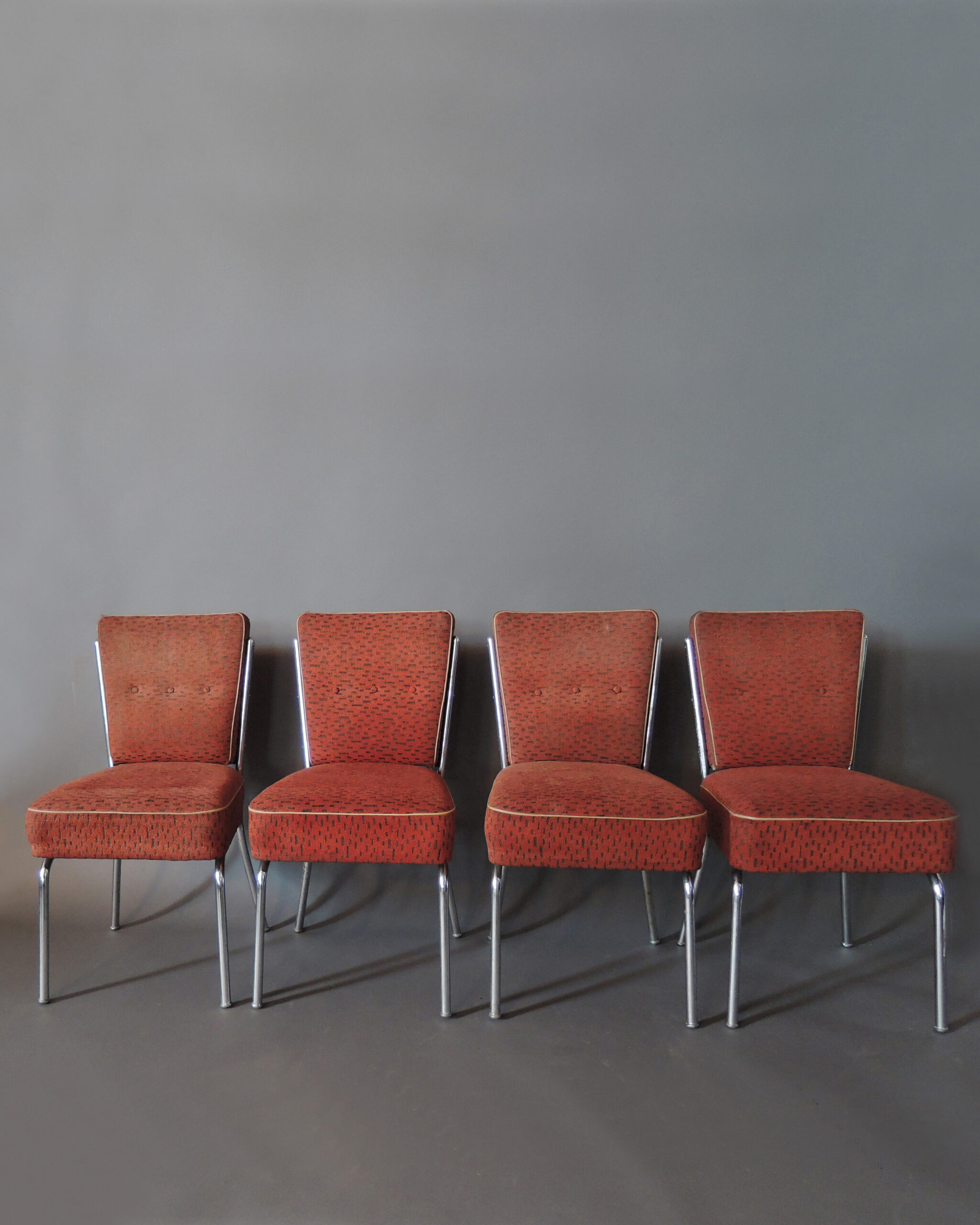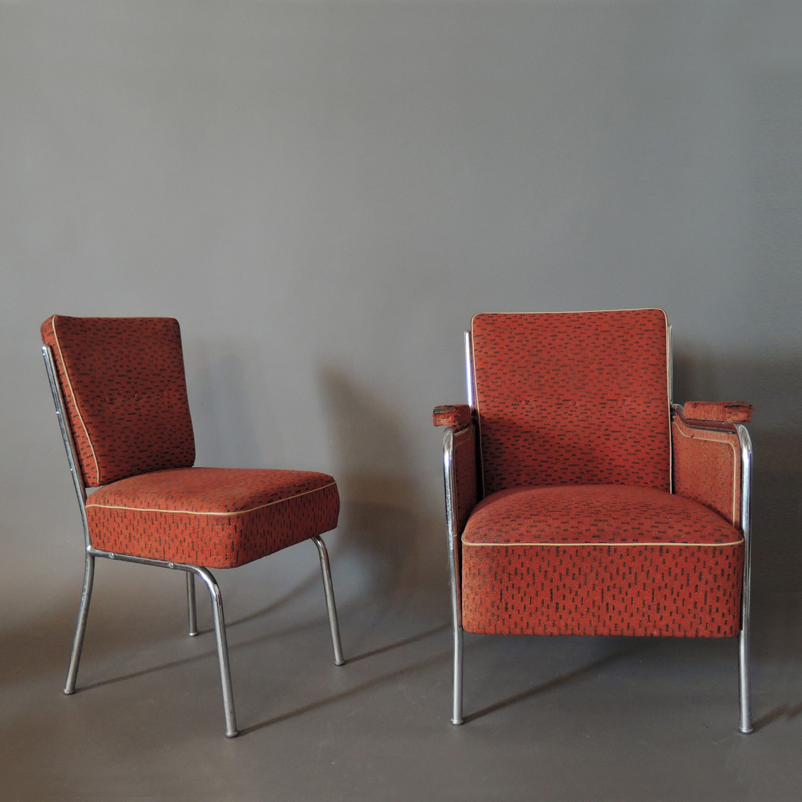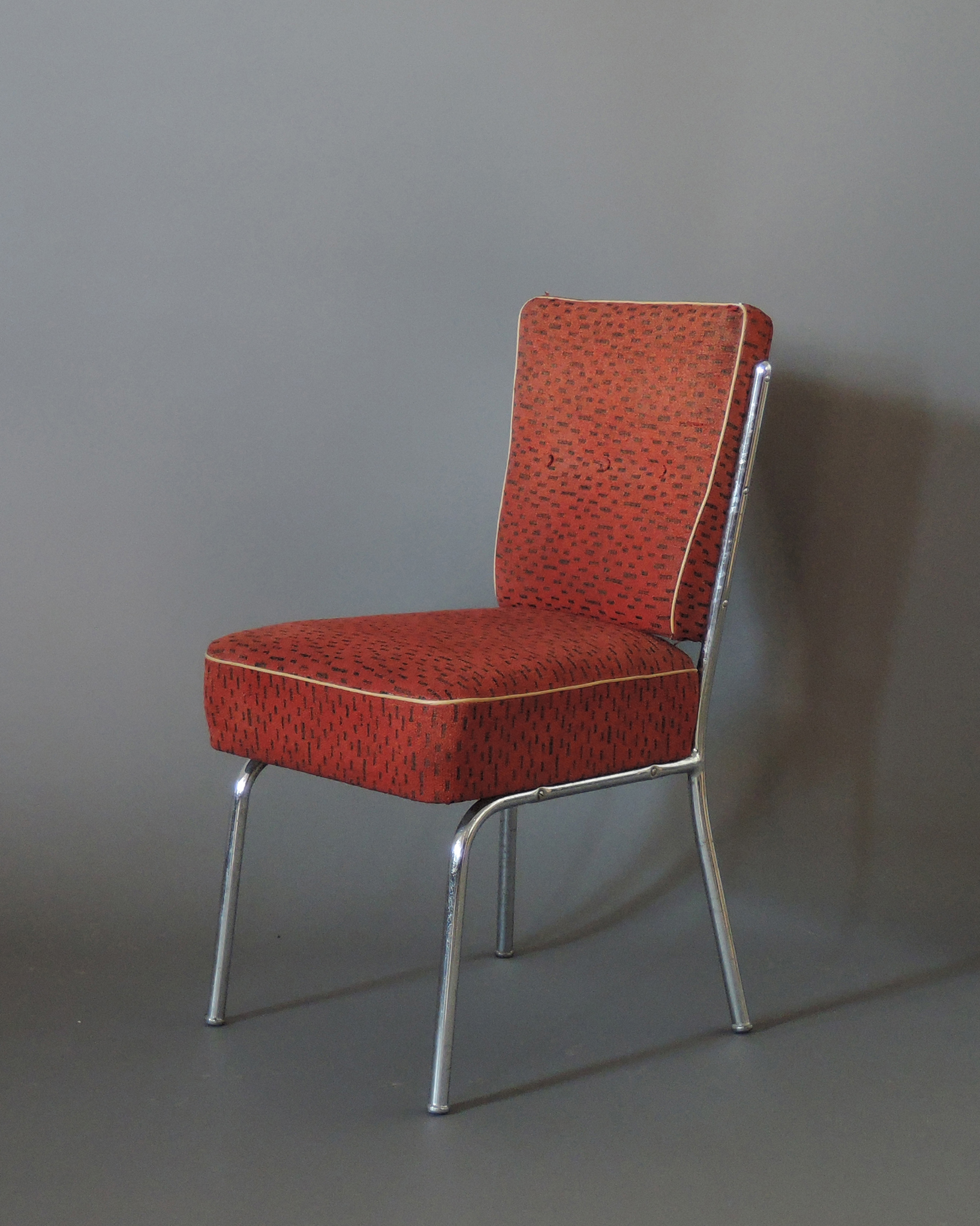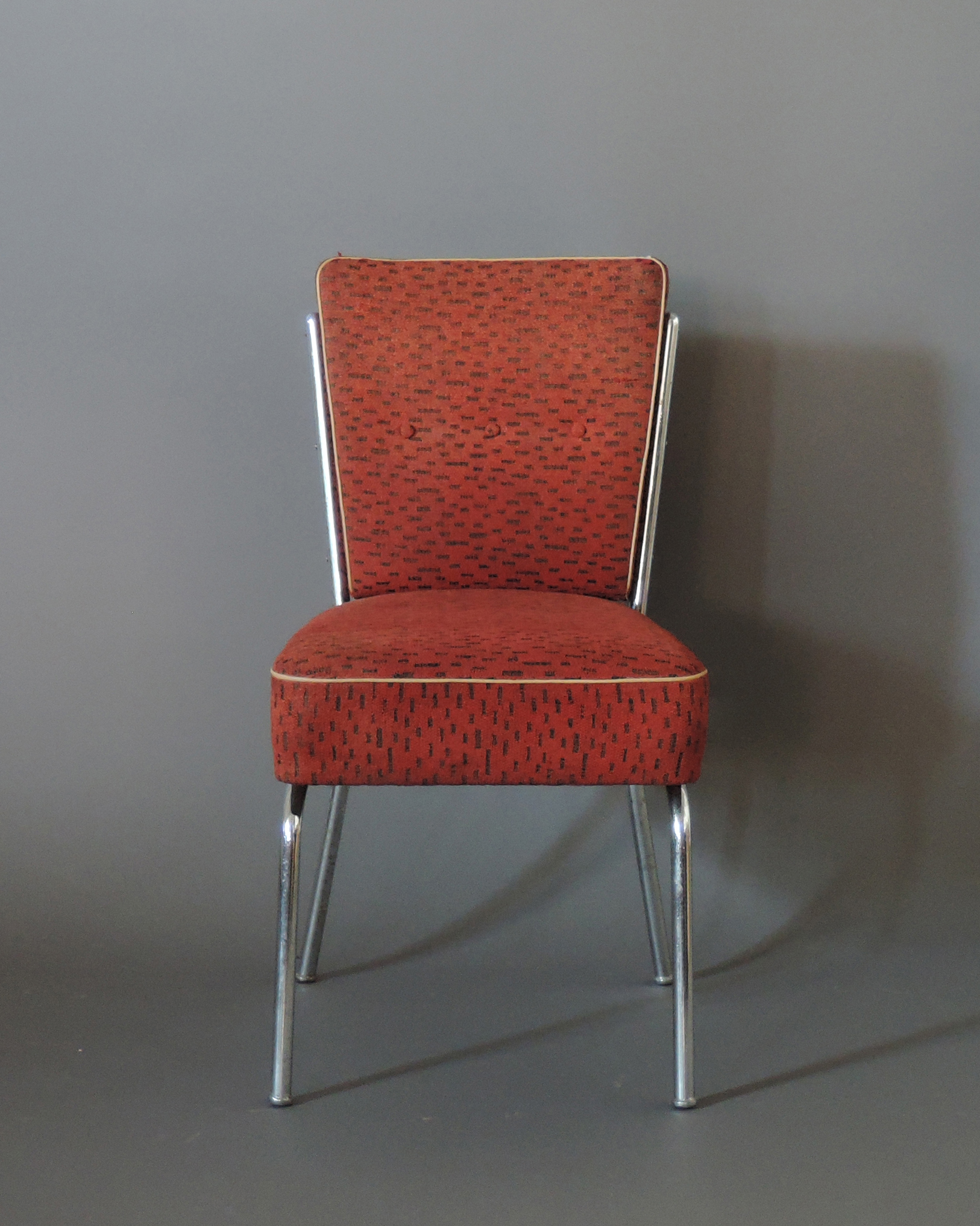 Good original vintage condition, chrome patina-ed, fabric worn.